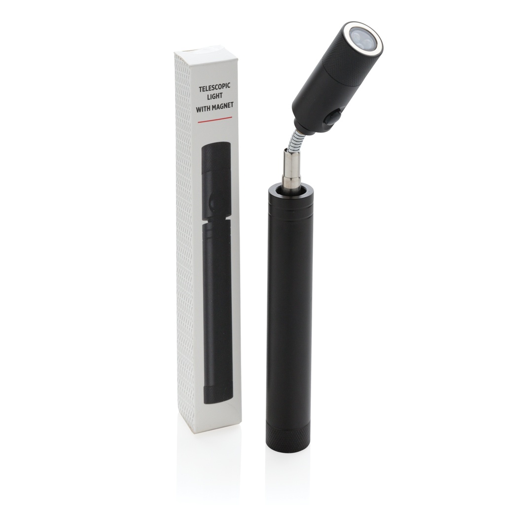 Телескопический фонарь с магнитом, черный