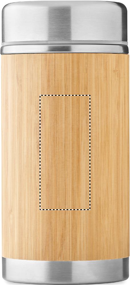 Термос для пищевых продуктов из нержавеющей стали с двойными стенками и завинчивающейся крышкой. Отделка из бамбука. Емкость: 600 мл.