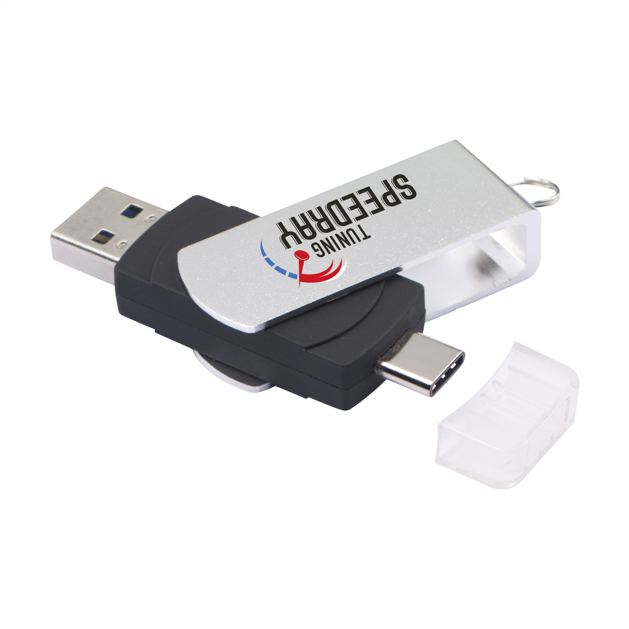 Стик с одной стороны • USB (версия 3.0) для безопасного и удобного хранения и переноса файлов, а с другой стороны • колпачок разъема Type-C (новый стандарт) для использования в качестве хранилища данных со смартфонов и планшетов. Одним движением поверните USB-накопитель из ABS с металлической передней части, что обеспечивает оптимальную защиту стика. С кольцом для ключей. Совместим с портами USB 2.0 и 3.0, ПК и Mac. Скорость чтения/записи до 10 раз выше в сочетании с портом 3.0. Готов к немедленному использованию благодаря системе «Plug & Play». Подходит для Windows, Mac и Linux. Каждое изделие в коробке. Цена включает одноцветную печать на одной стороне продукта.