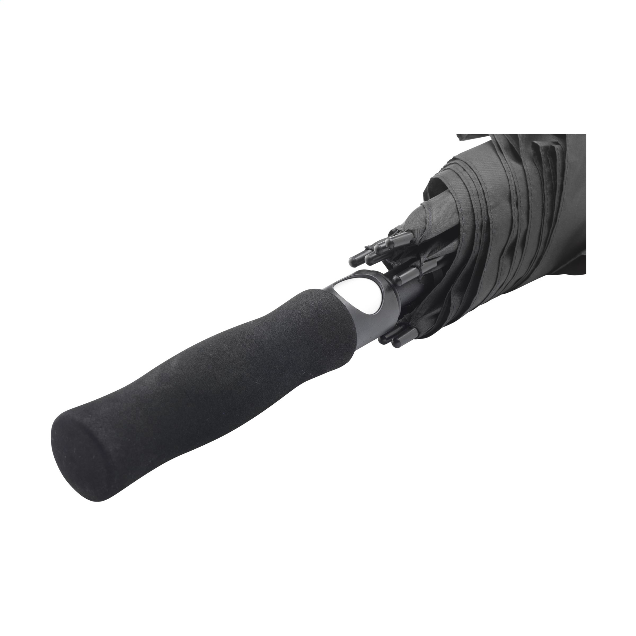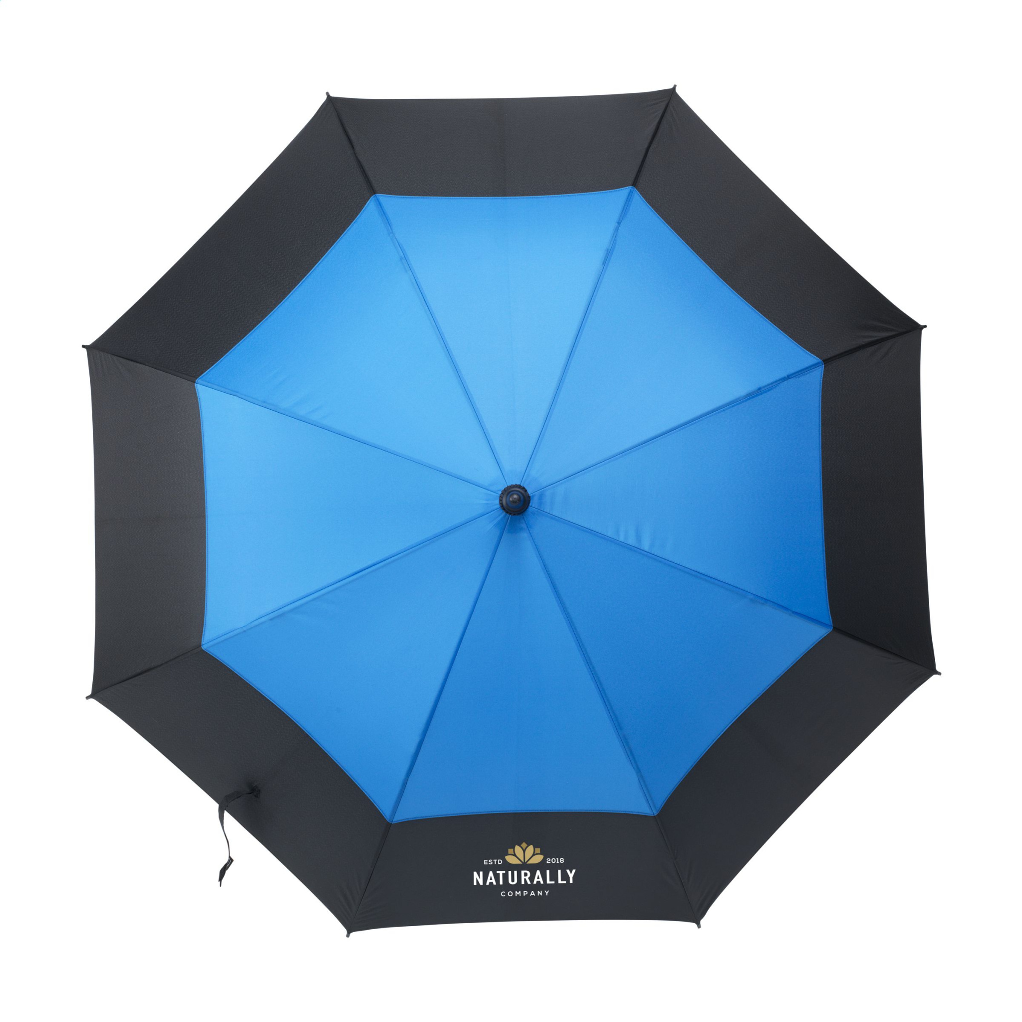 WoW! Зонт с куполом в 2 цветах, изготовленный из полиэстера RPET 190T. Этот эффектный зонт имеет очень большой диаметр экрана не менее 120 см. С автоматическим телескопическим подвесом (автоматическое открытие), стекловолоконной рамой и ручкой, покрытием ручки из мягкой пены EVA и застежкой-липучкой. Этот зонт частично изготовлен из переработанных ПЭТ-бутылок.