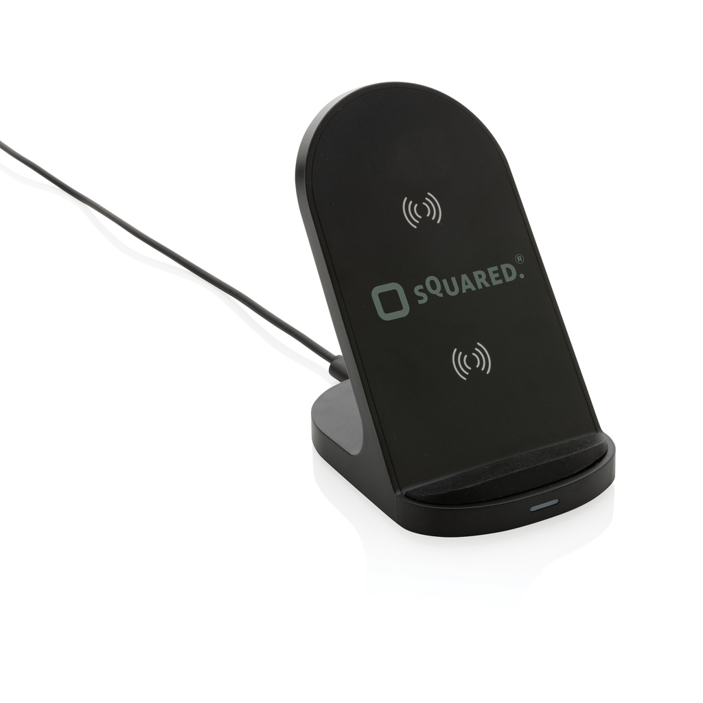 Logotrade kampanjprodukter bild: 15W trådlöst laddningsställ i RCS certifierad plast