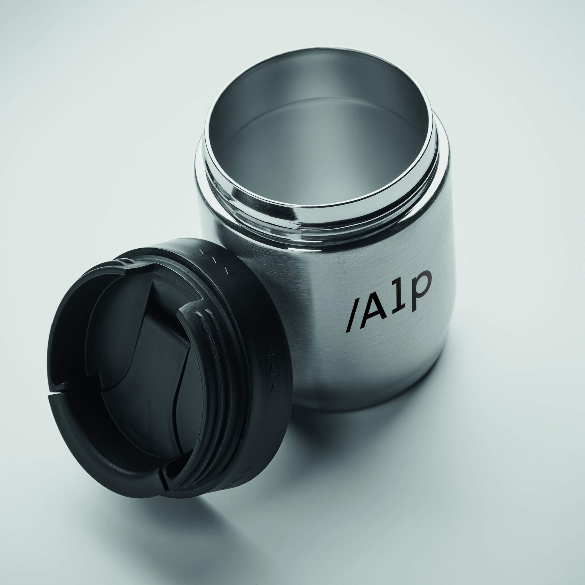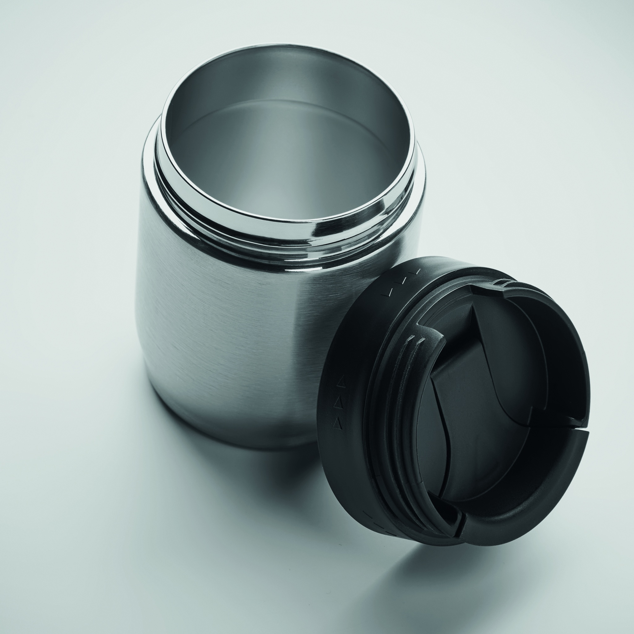 2-i-1 dubbelväggig termo flaska i rostfritt stål med avtagbar flip-lid mugg. Läcksäker. Volym: flaska: 500 ml / mugr: 310 ml.