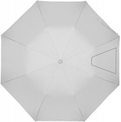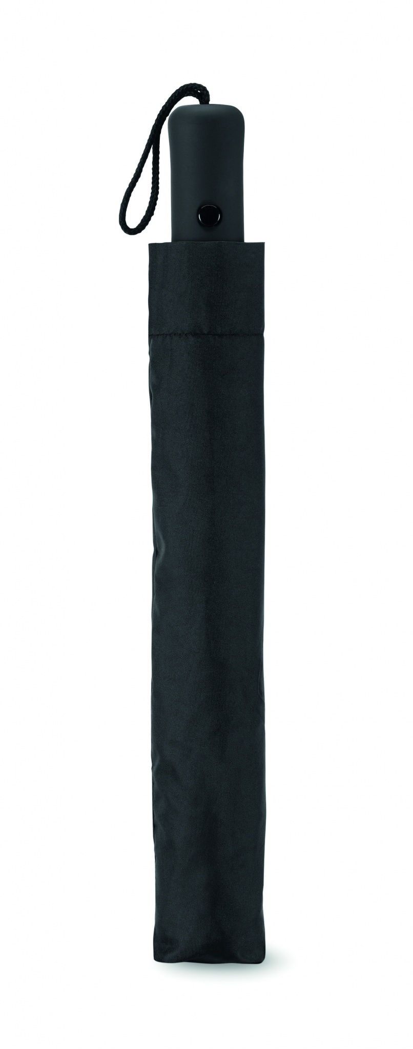 Sektionsparaply 21 tum i exklusivt 190T pongee material med pläterat stålskaft, spröt och spets. Svart gummerat handtag i ABS. Viks ihop i två sektioner. Manuell stängning och automatisk öppning. Inkluderar matchande påse.