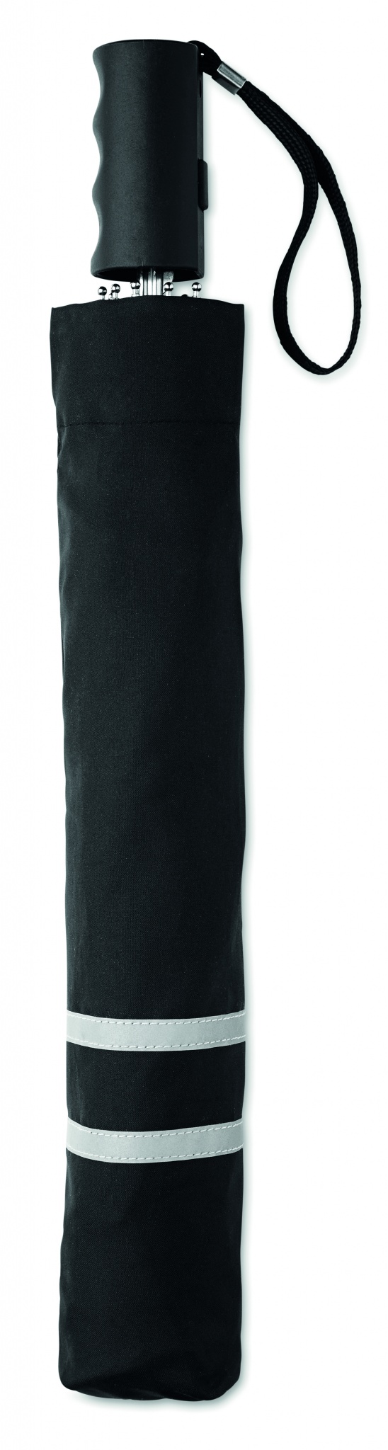 Sektionsparaply, 21 tums som smidigt passar i handväskan. Exklusiv Pongeenylon, automatisk öppning och ergonomiskt plasthandtag med handledsrem. Reflekterande band runt hela paraplyet. Färgmatchat fodral.
