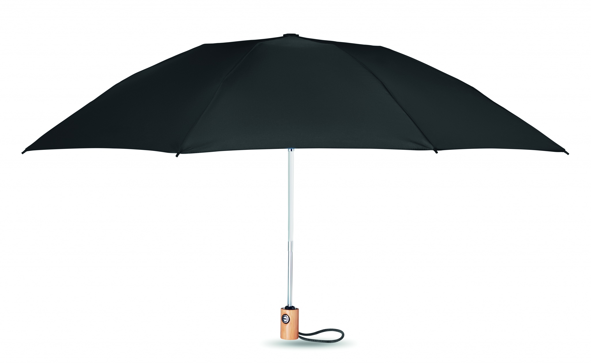 23-tums paraply i 190T pongee RPET och 3-delat skaft med automatisk öppning och stängning. Skydda dig från regnet med detta snygga paraply. På grund av fiberglasribborna är detta paraply stormsäkert, starkt men ändå lätt. Bambuhandtaget ger det ett naturligt utseende och bomullsremmen håller den hängande på din handled. Paraplyet är tillverkat av återvunnet PET-material. Precis som den matchande RPET-fodralet där du kan förvara paraplyet. Bambu är ett naturligt material och det kan finnas små variationer i färg och storlek per artikel, vilket kan påverka det slutliga märkresultatet.