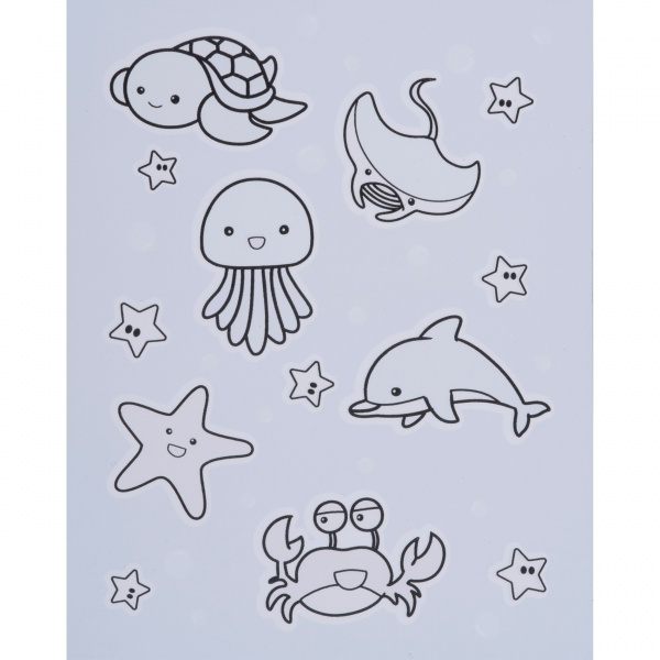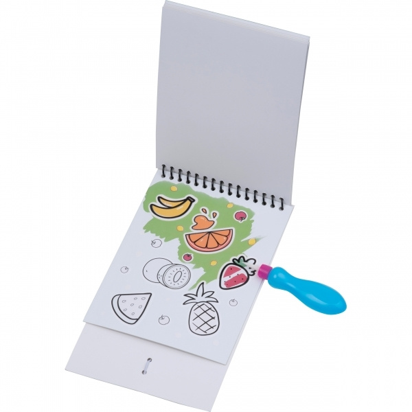 Det är magiskt! Med bara lite vatten kan barn underhållas om och om igen. Fyll bara penseln med vatten och börja måla på en av de fyra sidorna med roliga djurmotiv. Så fort pappret kommer i kontakt med vattnet dyker färgerna upp. När det torkar försvinner färgerna och det roliga kan börja om på nytt. Vi trycker din logotyp på framsidan.