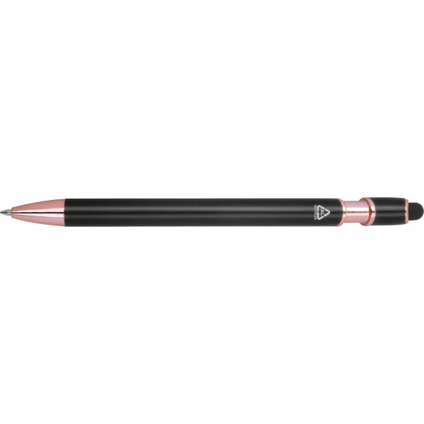 Semi-gelpenna tillverkad av återvunnen aluminium med touchpenna och blåskrivande refill med stor kapacitet (1 mm spets). Din logotyp appliceras på pennans hylsa med lasergravyr.