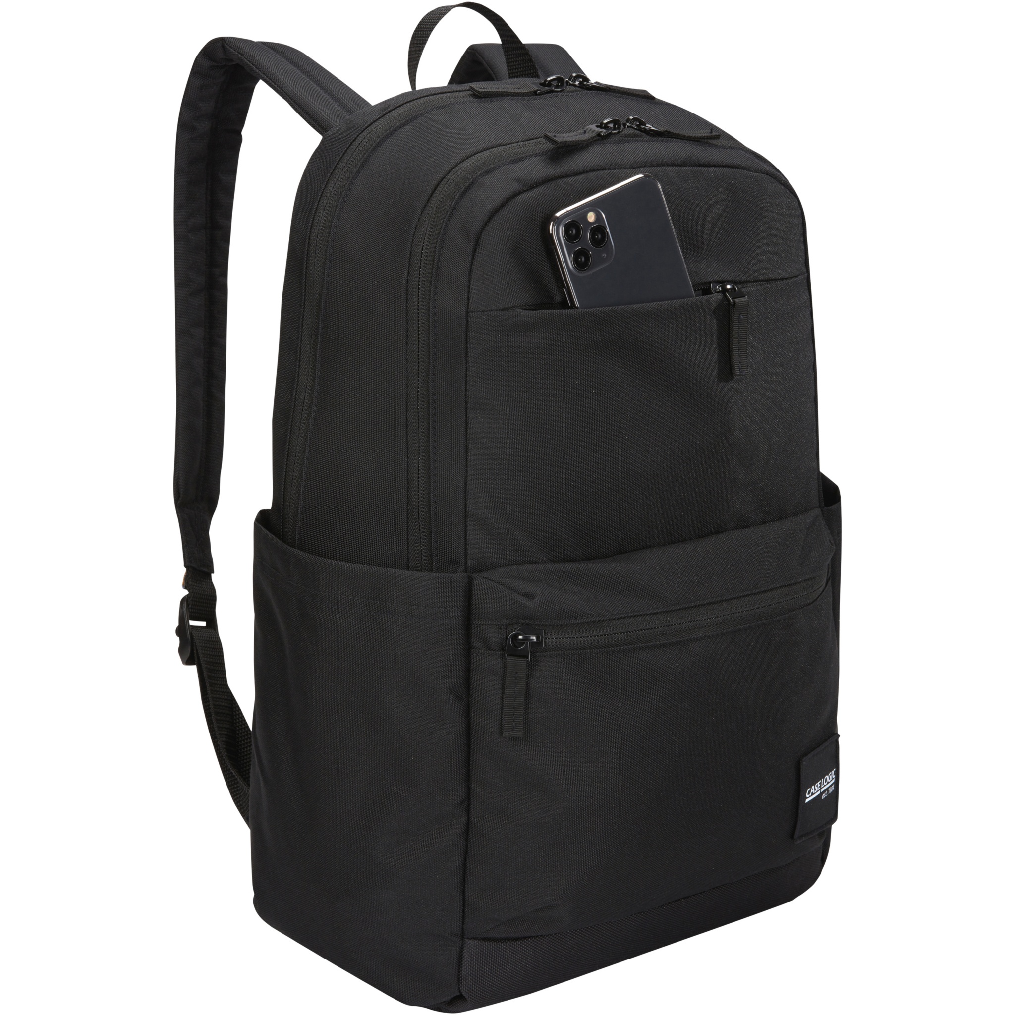 Ryggsäcken Case Logic Uplink har 26 liters förvaringskapacitet med två stora fack, dubbla framfickor och gott om organiseringsfack. Ryggsäcken är tillverkad av 100 % återvunnet 600D polyester kombinerat med en botten av vadderad, slitstark 100 % återvunnen 1200D polyester. De formade axelremmarna och en quiltad, helt vadderad ryggpanel garanterar en bekväm bärupplevelse. Med ett 15,6-tums vadderat laptopfack, ett 10-tums surfplattefack, två stora sidofickor för vattenflaskor eller andra småsaker samt en organiseringsficka framtill för små elektronikprodukter, pennor och nycklar. Det rymliga huvudfacket är utformat för att rymma böcker och mappar och ett sekundärt fack för ytterligare anteckningsböcker, hörlurar och personliga föremål, plus en liten blixtlåsförsedd privat ficka. Den snabbåtkomliga framfickan rymmer en telefon och små tillbehör.
