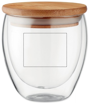 Glas med dubbelvägg i värmeresistent glas med bambu lock som har en silikonring. Volym 250 ml. Eftersom bambu är ett naturligt material kan vissa färgskiftningar förekomma.