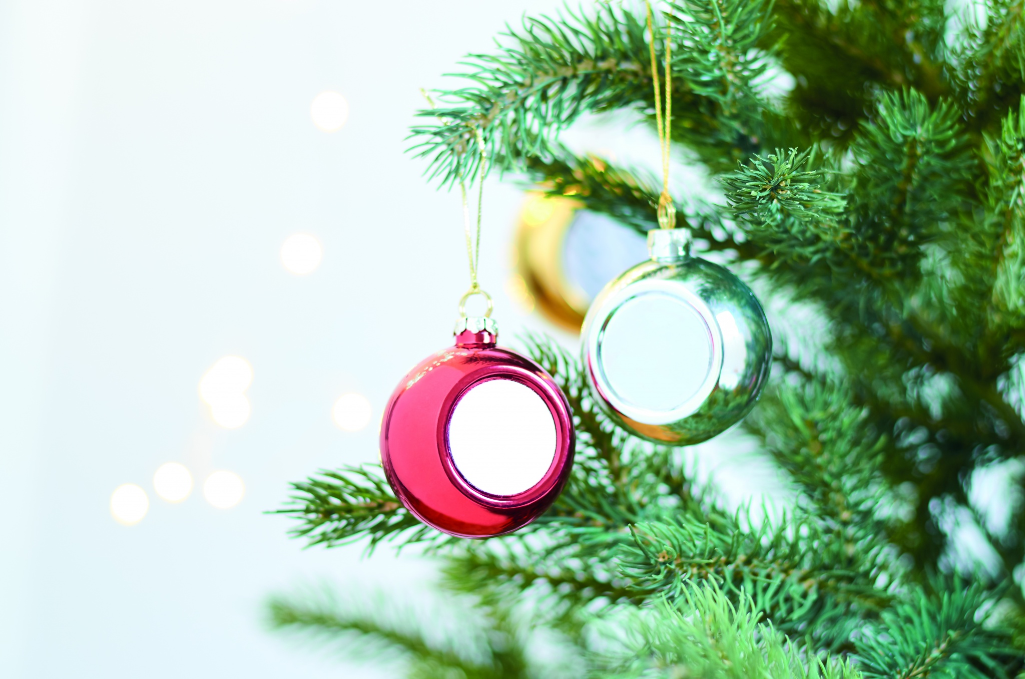 Julgranskula / dekoration med yta för sublimeringstryck, 6 cm i diameter.