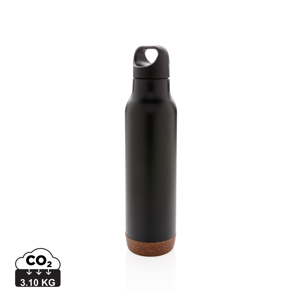 Vakuumisolerad läckagesäker flaska med insida i hållbart 304 SS och utsida i 201. Korkdetalj på botten av flaskan. Håller din dryck varm i upp till 5tim eller kyld upp till 15tim. Volym: 600ml.