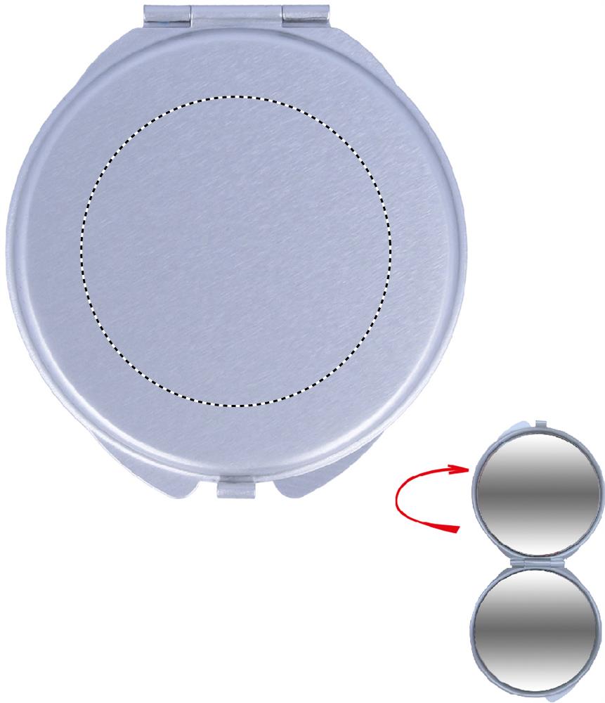 Make-up spegel i borstad aluminium med vanlig och förstorande spegel. Levereras i ett sammets överdrag.