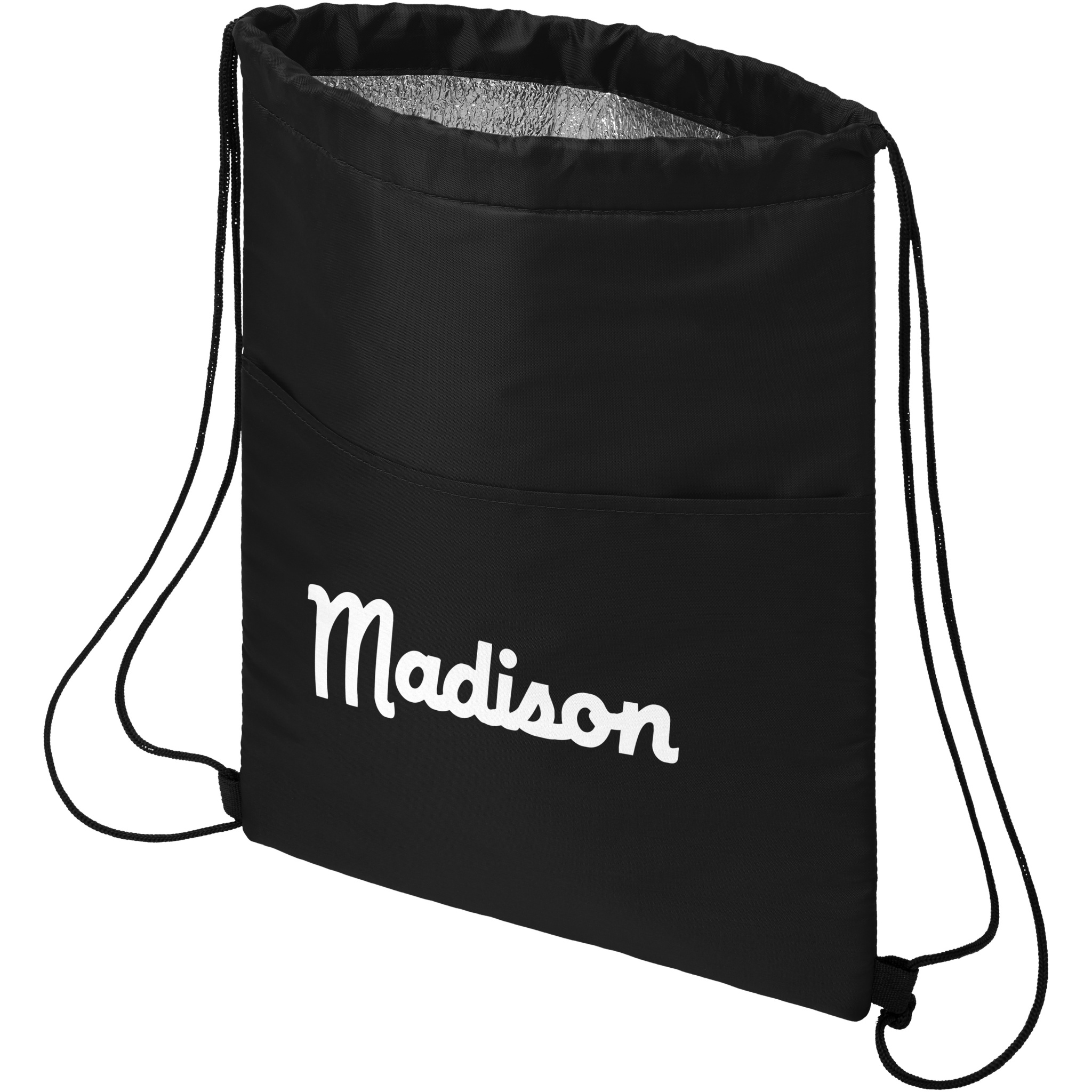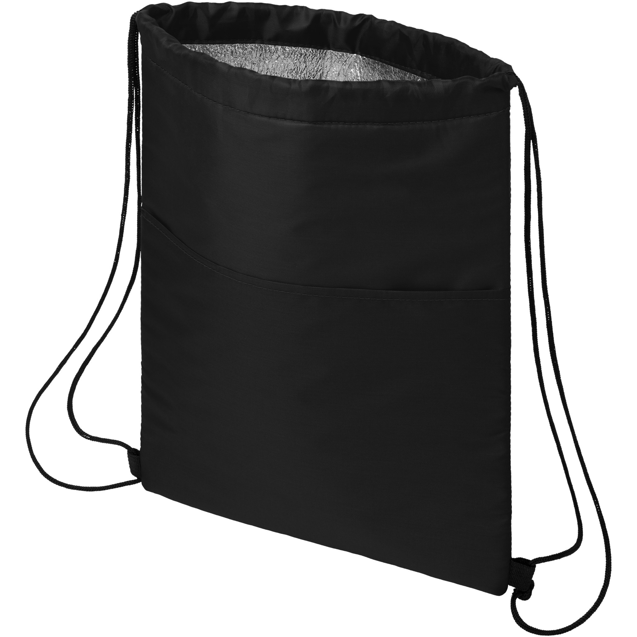 Kylväska med dragskostängning i svart färg. Har en öppen ficka framtill. Passar till tolv burkar. Klarar upp till 5 kg vikt.