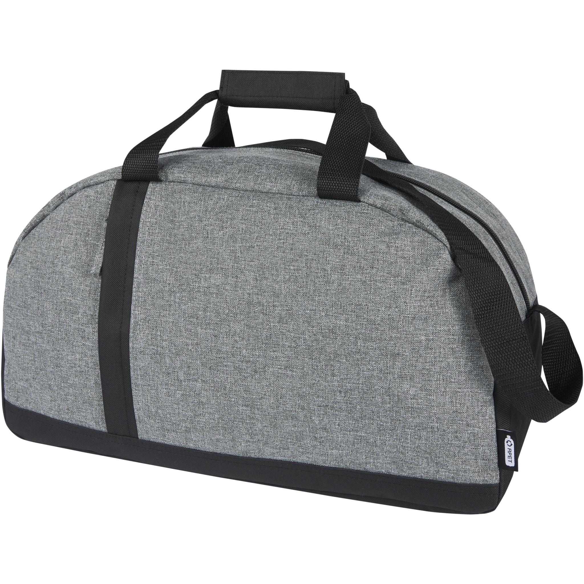 Sportduffelväskan Reclaim av återvunnen GRS är tvåfärgade och tillverkad av 100 % återvunnet material på utsidan och har en vertikal framficka med dragkedja och ett rymligt huvudfack med dragkedja. Tygklädda bärhandtag och reglerbara axelband för komfort när du bär den gör den lämplig för sportaktiviteter.