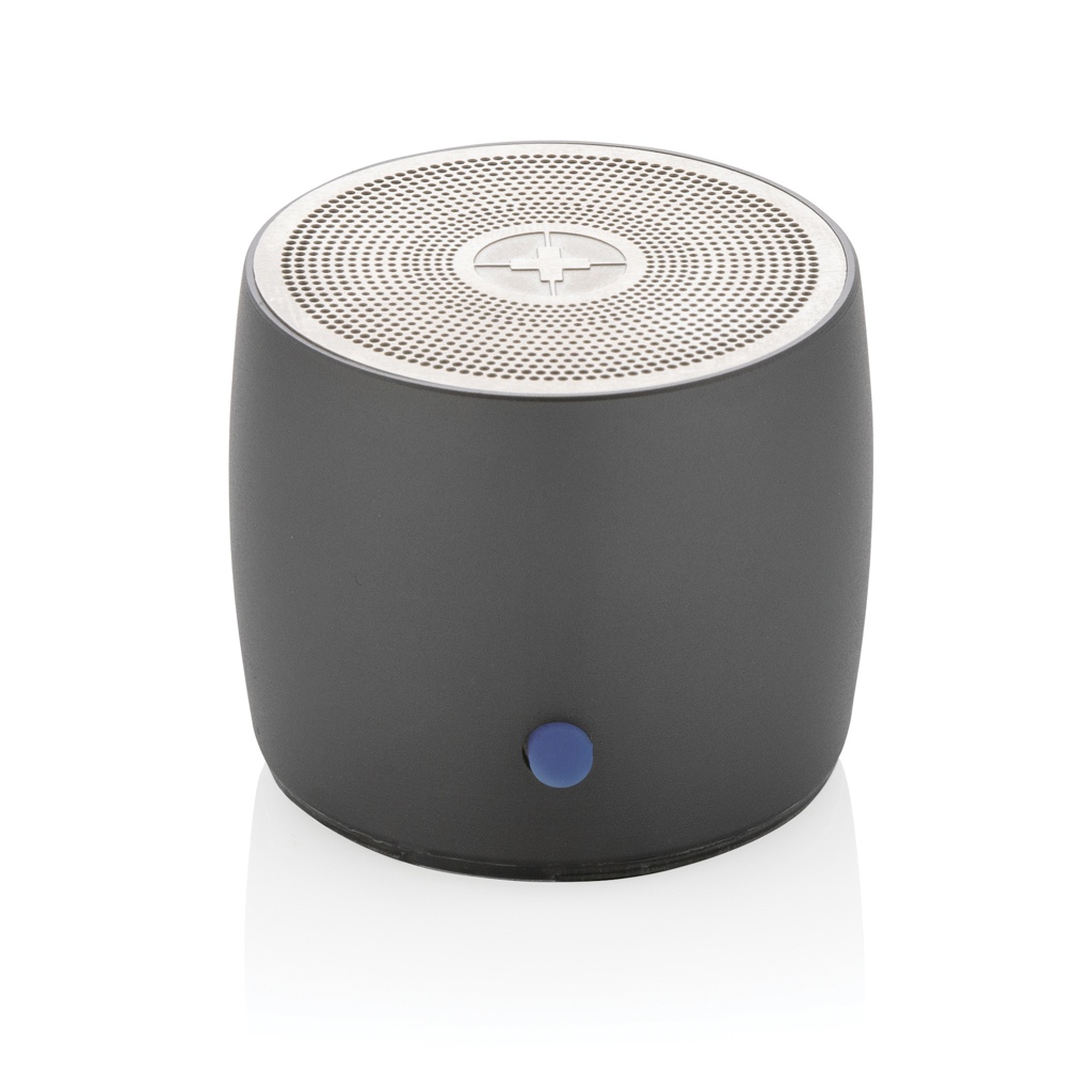 Liten men kraftfull trådlös högtalare på 3W tillverkad av RCS-certifierad (Recycled Claim Standard) återvunnen aluminium och återvunnen ABS. Totalt återvunnet innehåll: 28% baserat på total produktvikt. RCS-certifieringen garanterar en helt certifierad leveranskedja för de återvunna materialen. Aluminium förlorar inte sina egenskaper i återvinningsprocessen och kan återvinnas i all oändlighet. Type C laddningskabel av RCS-certifierad återvunnen TPE medföljer. Levereras i FSC®-mixförpackning. Batteriet på 500mah ger en speltid på upp till 4 timmar och kan laddas upp helt på 2 timmar. Med BT 5.0 för smidig anslutning med en räckvidd på upp till 10 meter. Produkten och tillbehören är fria från PVC.