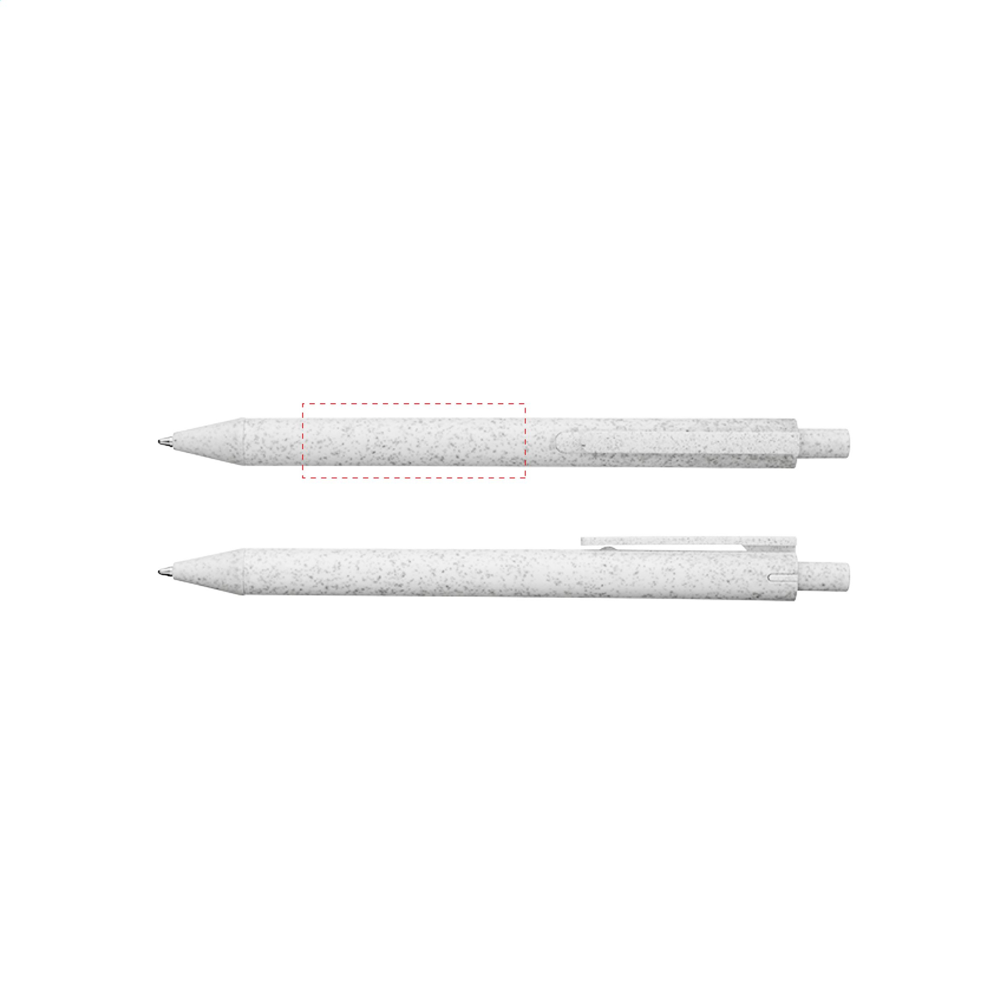 Miljövänlig kulspetspenna med blått bläck gjord av 50 % PP och 50 % vetehalm. Pipan, klämman och tryckknappen är gjorda av samma material och hela pennan har en snygg enfärgad design. Delvis biologiskt nedbrytbar.